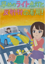令和6年度 JA共済 全国小・中学生 交通安全ポスターコンクール(応募数80,260点)の入賞作品から、今回のキャンペーンテーマである「早めのライト点灯」と、「ながらスマホ根絶」にぴったりの作品をご紹介します。